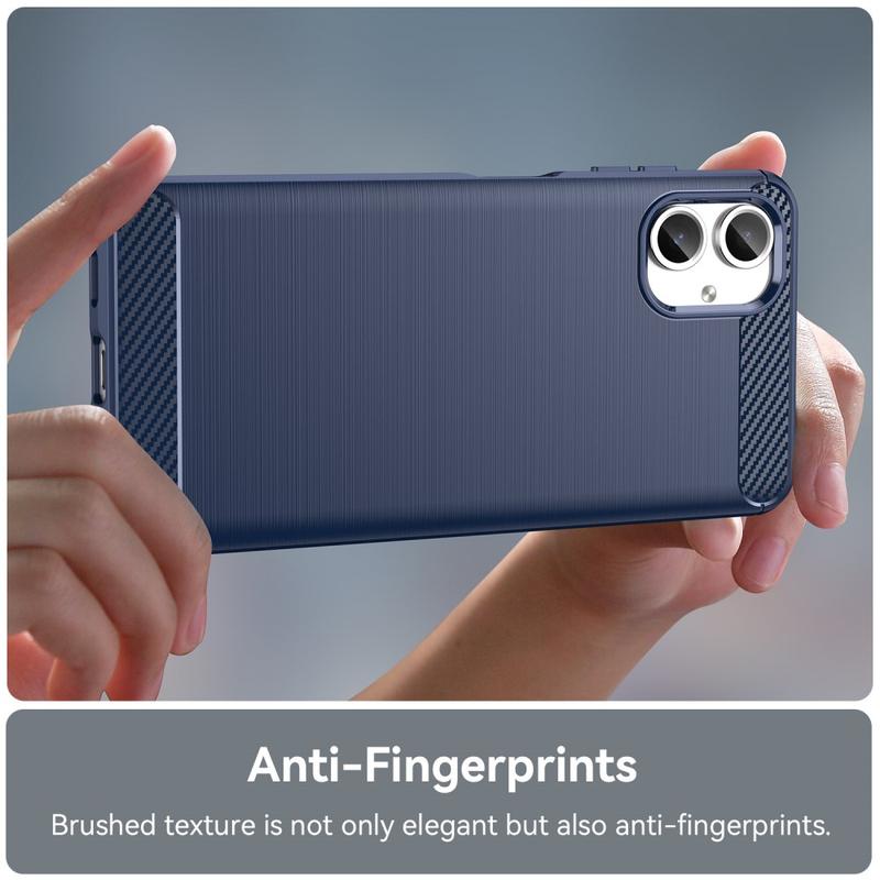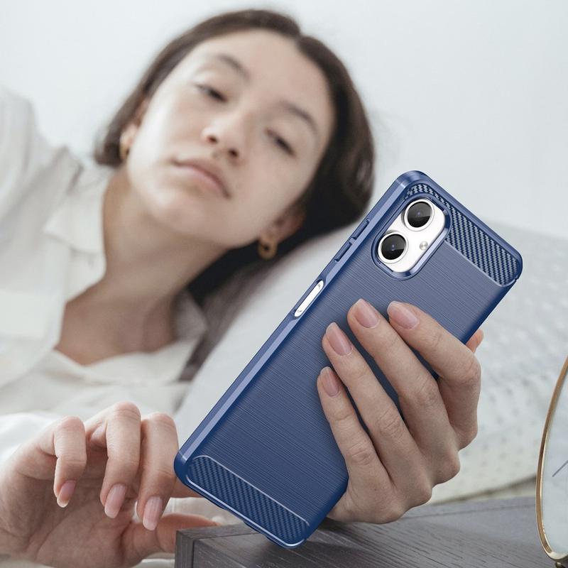 Det børstede TPU-cover beskytter din Samsung Galaxy A06 tilstrækkeligt, mens det giver den en fantastisk stil, takket være dets kulfibermønster på bagsiden. Coveret sikrer også mod overophedning, når du bruger din Samsung Galaxy A06, med dets varmeafledningsdesign.