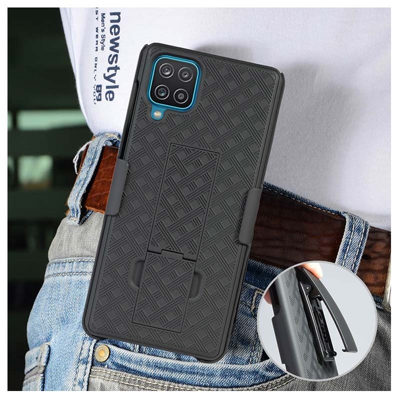Samsung Galaxy A12 Hybrid Cover med Bælteklips - Sort