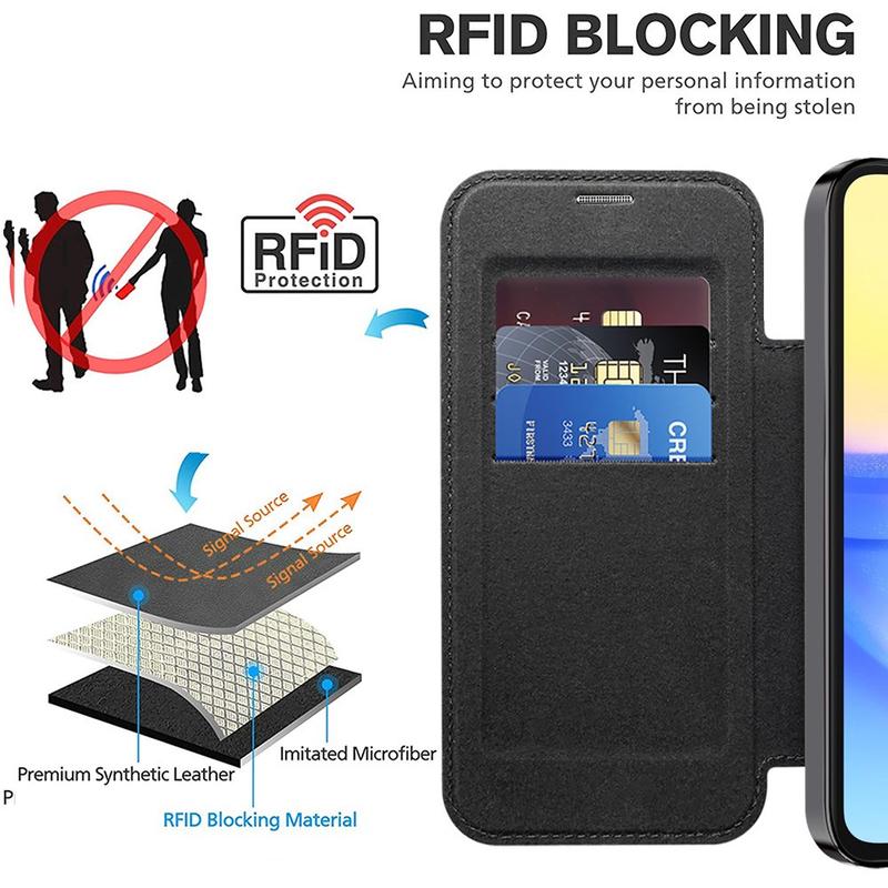 Flip cover med kortholder til Samsung Galaxy A15 - MagSafe-kompatibel, RFID-beskyttelse