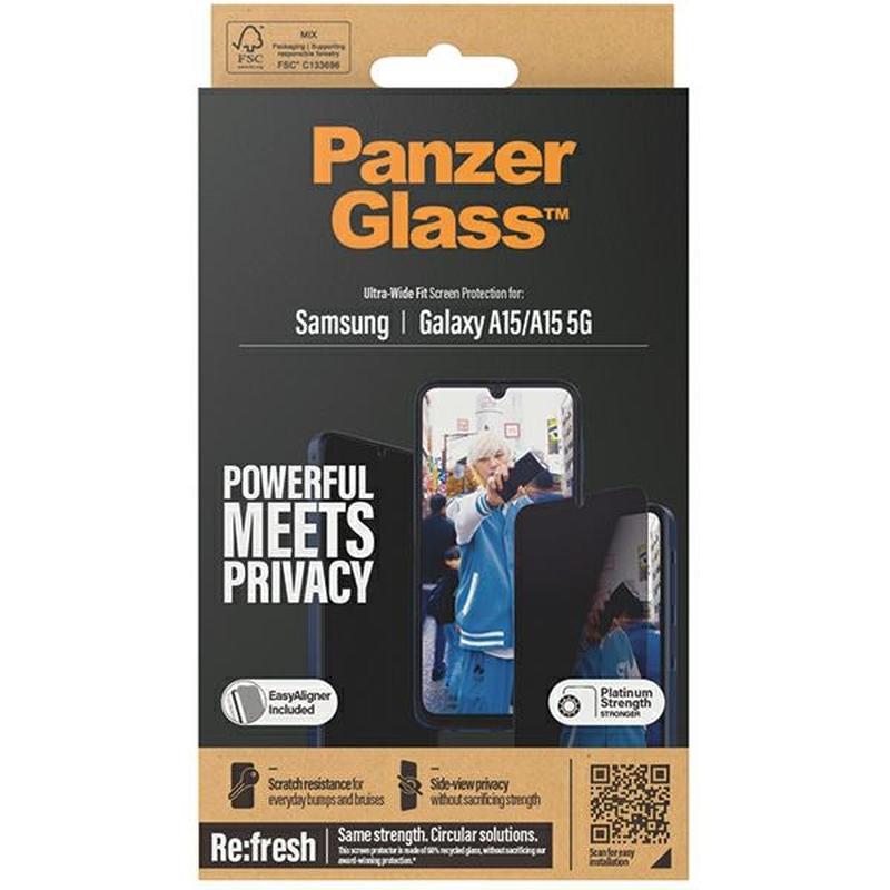 PanzerGlass Ultra-Wide Fit Privacy EasyAligner AntiBacterial Hærdet Glas til Samsung Galaxy A15