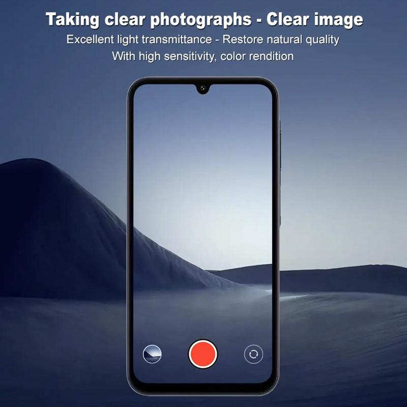 Med sine mange forstærkninger vil dette Imak HD kameralinse hærdede glas holde kameraet på din Samsung Galaxy A16 helt sikkert mod ridser og dagligdagsskader. Den hydrofobe og oleofobiske overflade reducerer også fingeraftryk, mens du bruger din Samsung Galaxy A16.