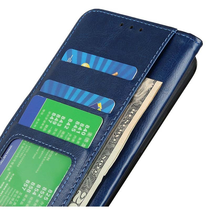 Giv din nye Samsung Galaxy A17 et raffineret vintage-look, mens du erstatter din daglige pung. Ydersiden i polyuretan med Crazy Horse-tekstur kombineres med en stødabsorberende TPU-skal for at beskytte mod fald og ridser, mens smarte lommer holder styr på kort og kontanter.