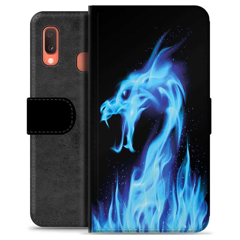Samsung Galaxy A20e Premium Flip Cover med Pung - Blå Ild Drage