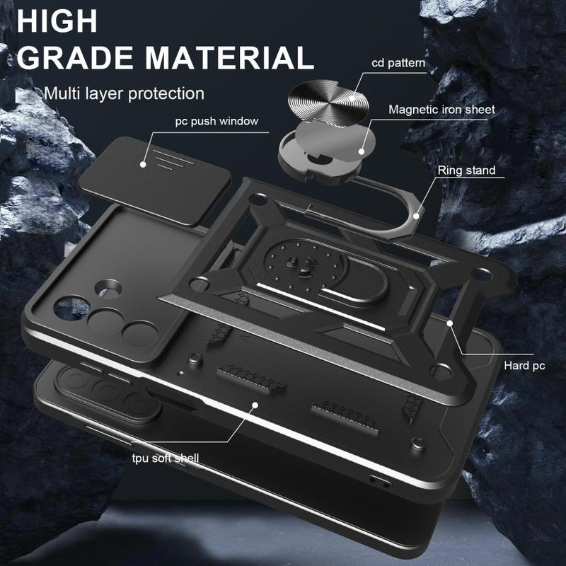 Samsung Galaxy A26 Roterende Ring Hybrid Cover med Kameraskjold - Sort