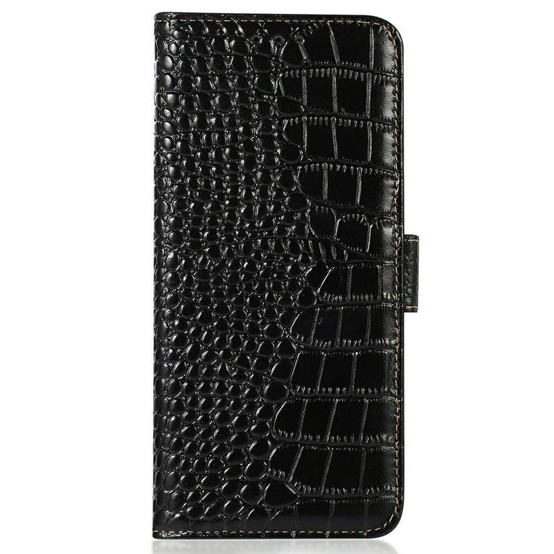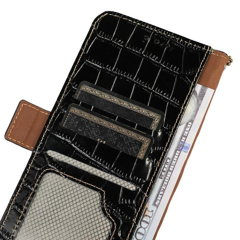 Et let og blødt pungcover med en unik krokodilletekstur, det perfekte valg til at beskytte din Samsung Galaxy A27 og holde den ubeskadiget. Den er lavet af ægte læder af høj kvalitet og indvendigt TPU-materiale, designet med tre kortpladser, en ID-slot og en lomme til kontanter, ideel til at bære dine væsentlige ting ved siden af din Samsung Galaxy A27. Desuden blokerer RFID-teknologi effektivt eksterne signaler og holder dine data sikret.
