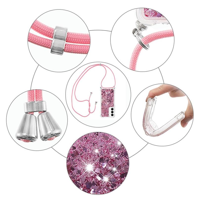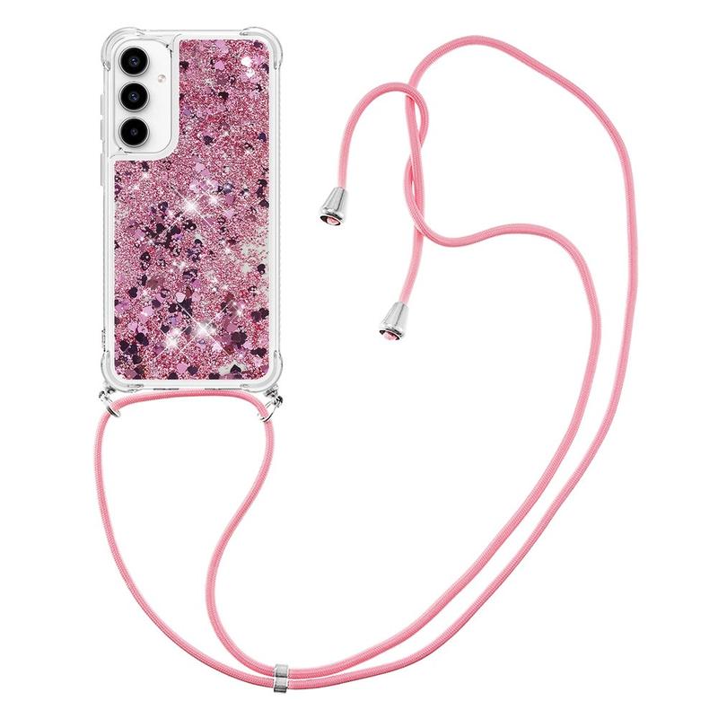 Lav din Samsung Galaxy A35 om til et sprudlende tilbehør, med dette glimtende beskyttende cover med rem. Coveret er lavet af meget holdbart TPU med forstærkede hjørner, der beskytter din enhed yderligere. Det har præcise udskæringer til alle porte og mærkbare knapper i siden, så du kan bruge din Samsung Galaxy A35 som du plejer. Samtidig kan du med den lange nøglesnor transportere din Samsung Galaxy A35 sikkert og mere praktisk.