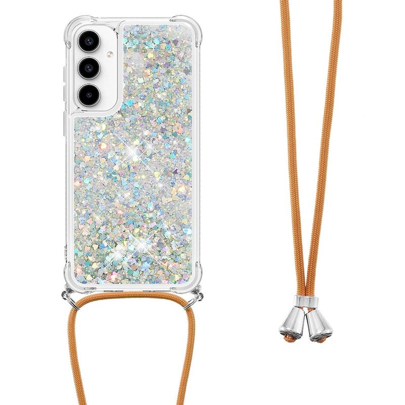 Lav din Samsung Galaxy A35 om til et sprudlende tilbehør, med dette glimtende beskyttende cover med rem. Coveret er lavet af meget holdbart TPU med forstærkede hjørner, der beskytter din enhed yderligere. Det har præcise udskæringer til alle porte og mærkbare knapper i siden, så du kan bruge din Samsung Galaxy A35 som du plejer. Samtidig kan du med den lange nøglesnor transportere din Samsung Galaxy A35 sikkert og mere praktisk.
