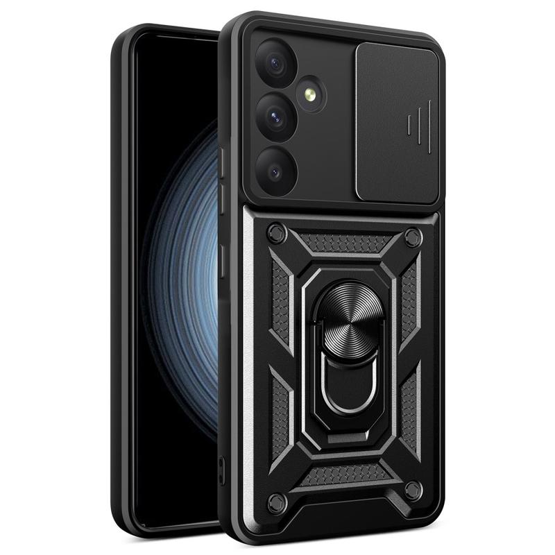 Samsung Galaxy A35 Roterende Ring Hybrid Cover med Kameraskjold - Sort