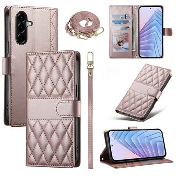 Luksus quiltet pungetui med skulder- og håndledsrem til Samsung Galaxy A37 - beskyttende cover med rombe-mønster