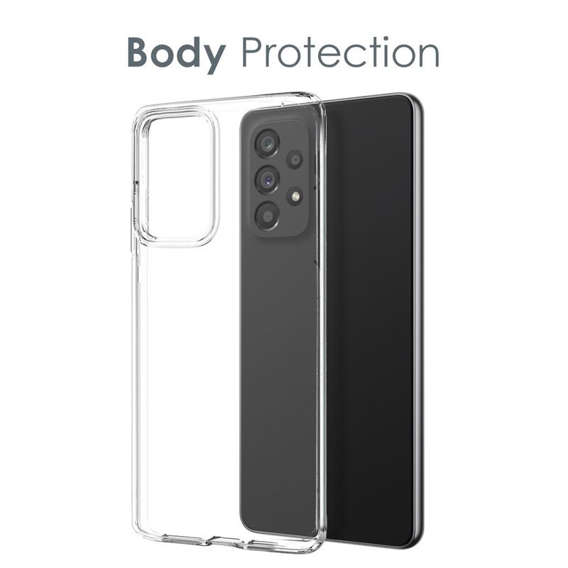 - Gennemsigtigt designet letvægts cover beskytter og viser det originale udseende af din Samsung Galaxy A53 5G