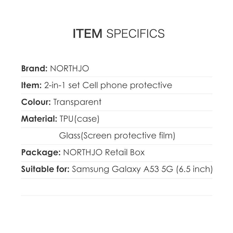 Samsung Galaxy A53 5G Northjo 2-i-1 Beskyttelsessæt - Klar
