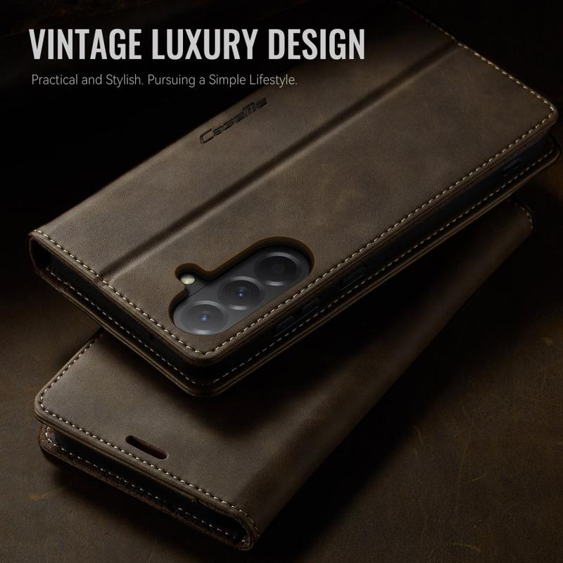 CASEME 033 Series Wallet Case til Samsung Galaxy A57 er fremstillet af polyuretan med kalvestruktur kombineret med TPU og giver fuld beskyttelse mod ridser, stød og daglig brug, samtidig med at den bevarer et førsteklasses, elegant udseende.
