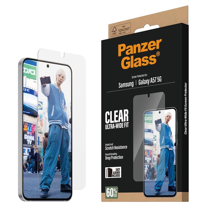 - Ultra-Wide Fit skærmbeskytter i hærdet glas til Samsung Galaxy A57 fra PanzerGlass
