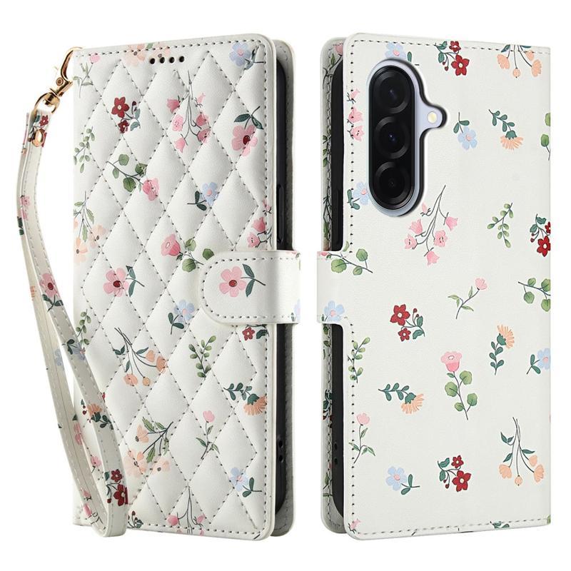 Opfrisk din Samsung Galaxy A57 med en slank flip-pung, der kombinerer sikker beskyttelse og praktisk anvendelighed i hverdagen. Den rombisk syede forside og det lille blomstermønster giver elegant stil, mens en blød TPU-skal afbøder stød og en polyuretanindpakning beskytter mod ridser. Flere kortpladser, en lomme til kontanter og en medfølgende håndledsrem gør dette etui til den perfekte løsning til pendling, rejser eller byture.