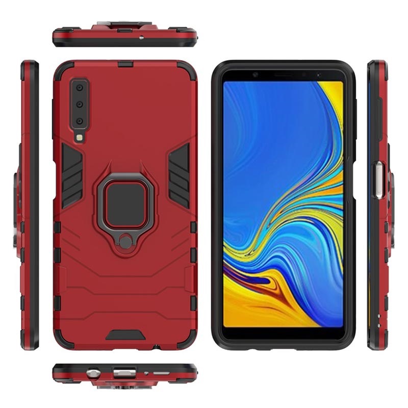 Samsung Galaxy A7 (2018) Hybrid Cover med Ring Holder - Rød