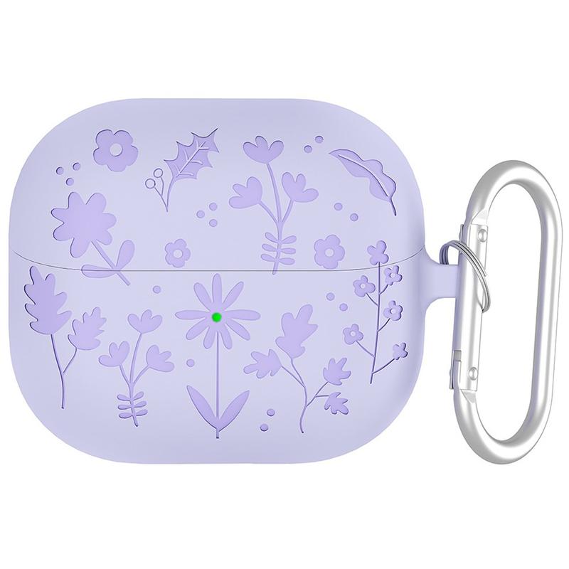 Flydende silikoneetui med blomstermønster og karabinhage til Samsung Galaxy Buds3, Galaxy Buds3 Pro