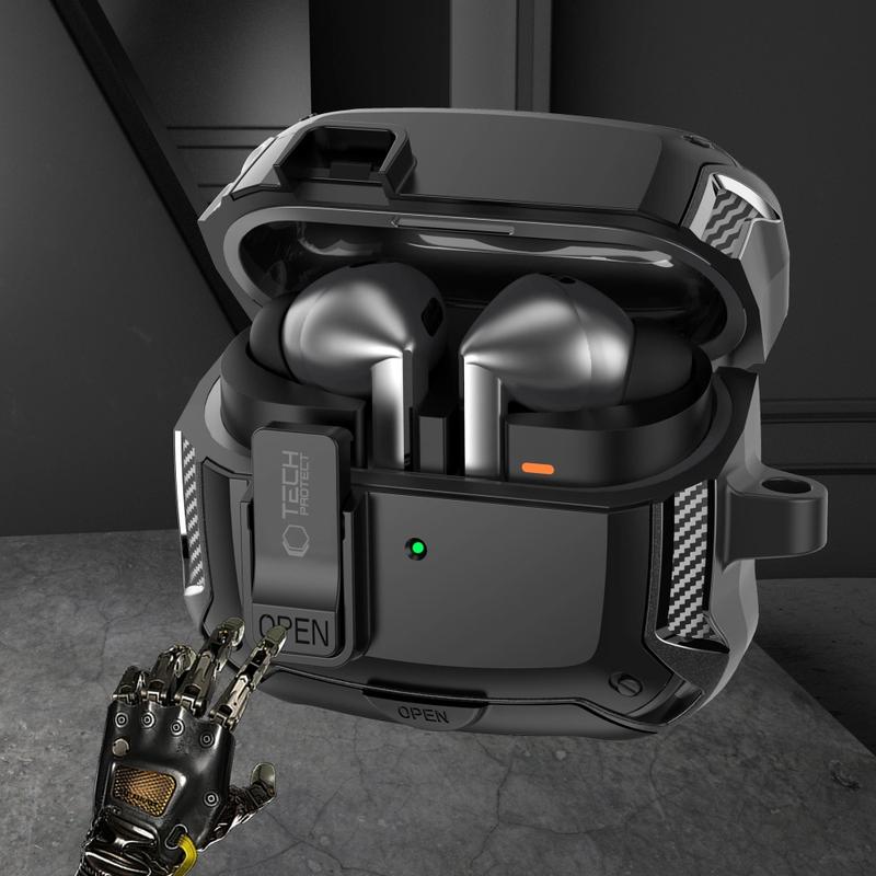 Tech-Protect Carbonox-etui til Samsung Galaxy Buds3, Galaxy Buds3 Pro, Galaxy Buds3 FE - Robust beskyttelse med nøglering