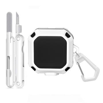 Samsung Galaxy Buds4/Buds4 Pro robust etui med karabinhage og rengøringspenne - hvid / sort