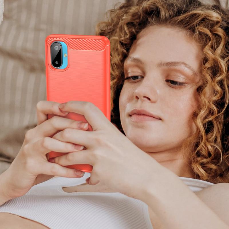 Hvis du vælger dette etui med kulfiberstruktur, kombineres stil, holdbarhed og funktionalitet i én pakke. Ved at bevare den slanke profil på din Samsung Galaxy M06, Galaxy F06 5G føles det ikke besværligt, mens det børstede design giver et luksuriøst touch. Desuden reducerer det skridsikre greb risikoen for utilsigtede skader, hvilket gør det ideelt til en aktiv livsstil.
