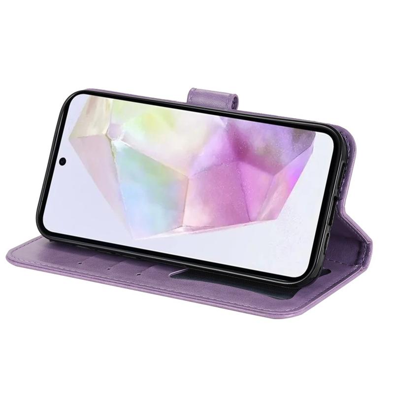 Den unikke pung beskytter Samsung Galaxy M35 mod hverdagens ridser og stød og virker også som stativ til video. Pungen har indvendig rum til kort og en større lomme til kontanter, så du kan opbevare alle dine værdigenstande samme sted.