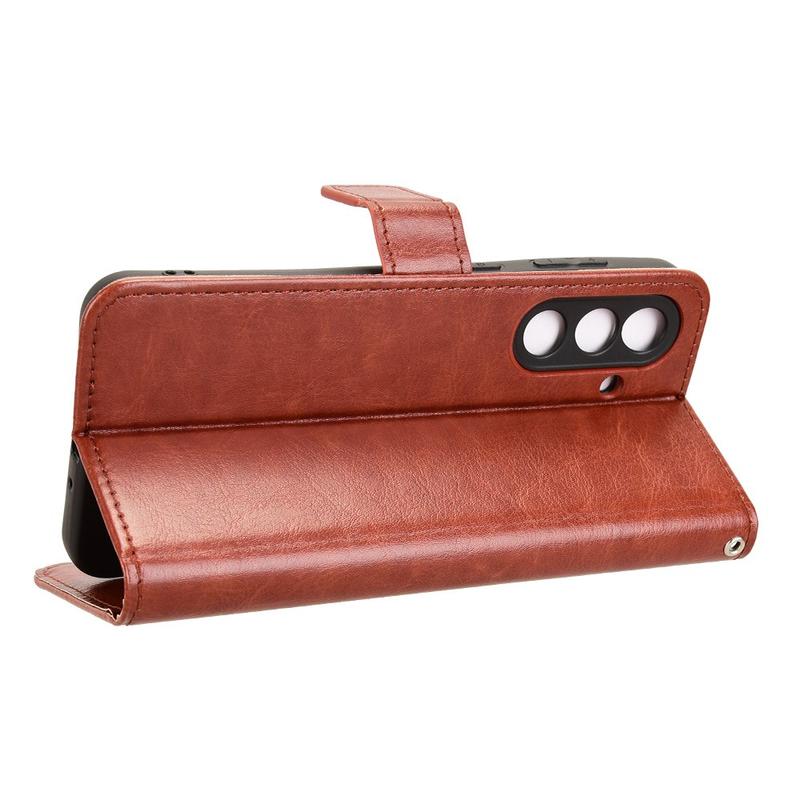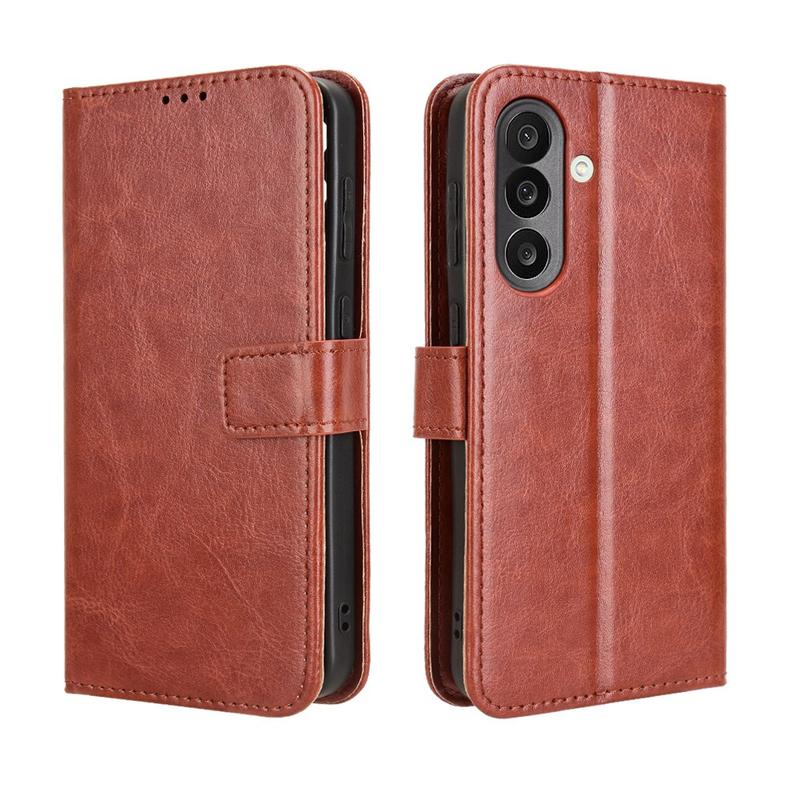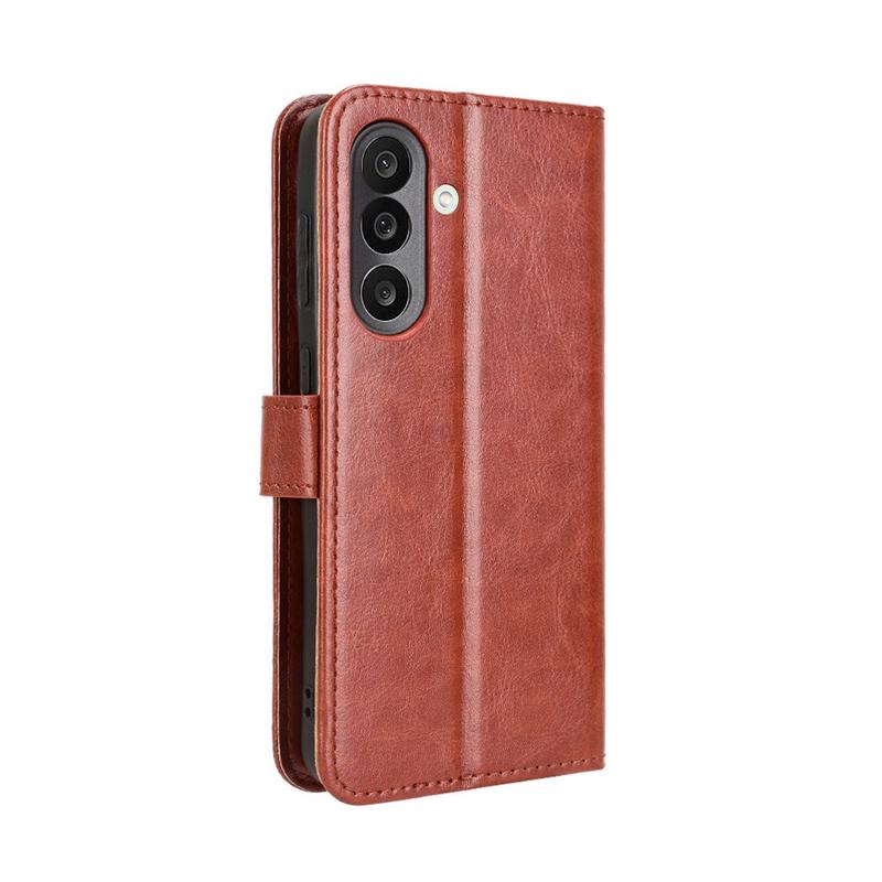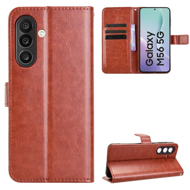Giv din nye Samsung Galaxy M56 et raffineret vintage-look, mens du erstatter din daglige pung. Ydersiden i polyuretan med Crazy Horse-tekstur kombineres med en stødabsorberende TPU-skal for at beskytte mod fald og ridser, mens smarte lommer holder styr på kort og kontanter.