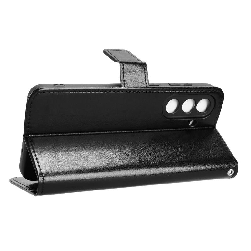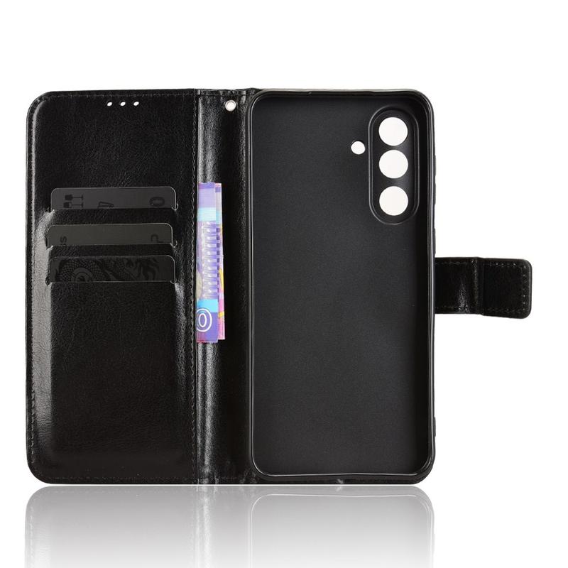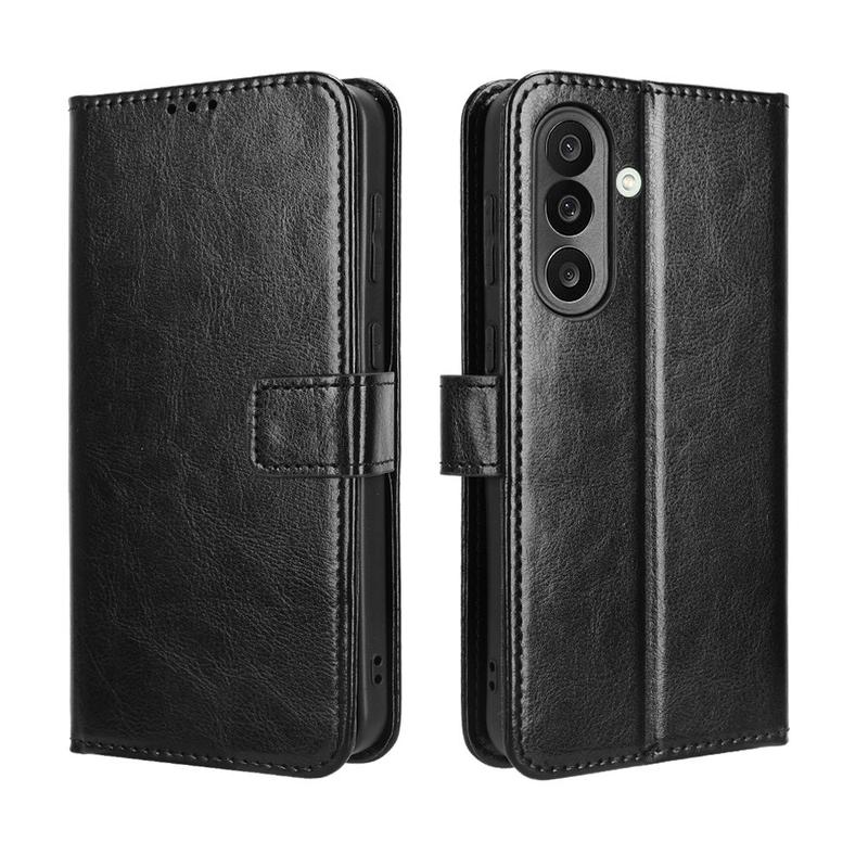 Giv din nye Samsung Galaxy M56 et raffineret vintage-look, mens du erstatter din daglige pung. Ydersiden i polyuretan med Crazy Horse-tekstur kombineres med en stødabsorberende TPU-skal for at beskytte mod fald og ridser, mens smarte lommer holder styr på kort og kontanter.
