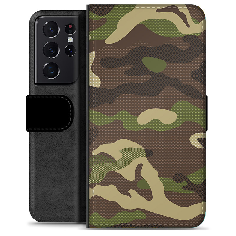 Samsung Galaxy S21 Ultra 5G Premium Flip Cover med Pung - Camo