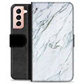 Samsung Galaxy S21 5G Premium Flip Cover med Pung - Marmor