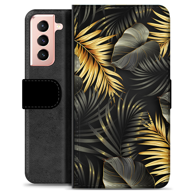 Samsung Galaxy S21 5G Premium Flip Cover med Pung - Gyldne Blade