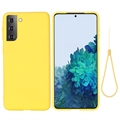 Samsung Galaxy S21 5G Liquid Silikone Cover med Strop - Gul