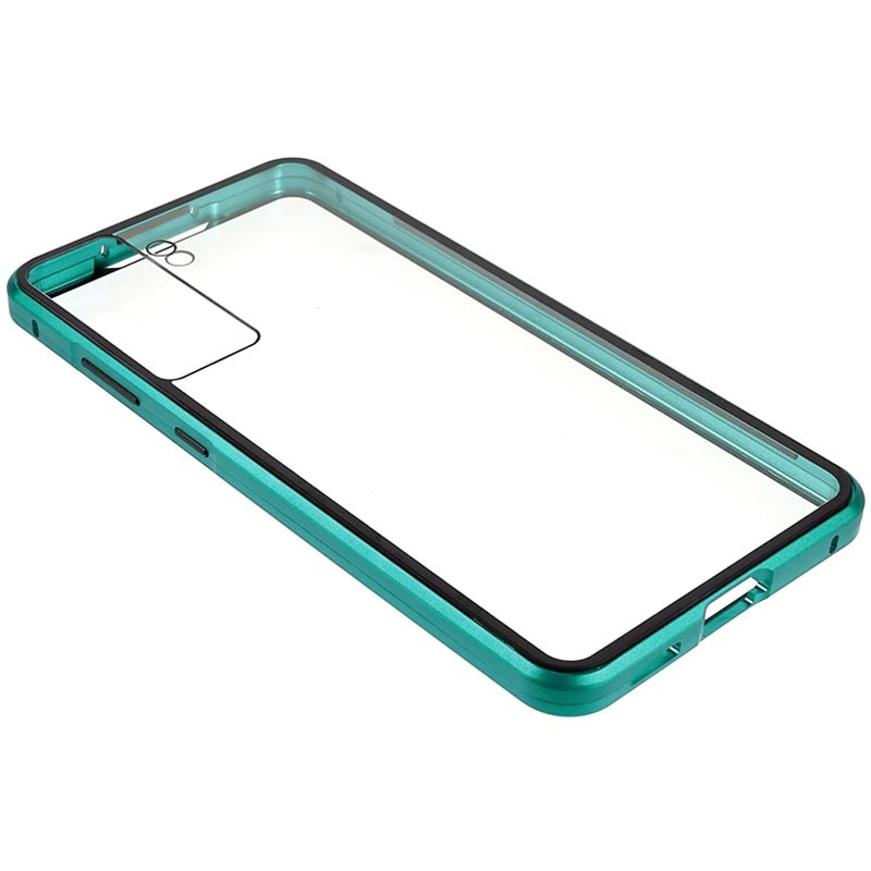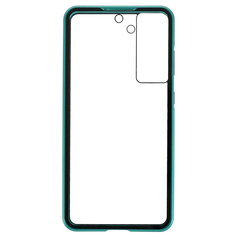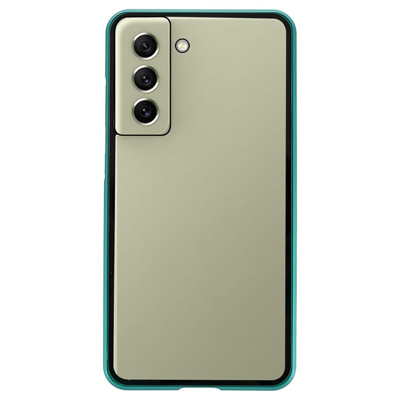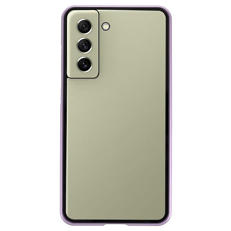 - Samsung Galaxy S21 FE 5G cover med en metalramme og hærdet glas skærmbeskyttelse til for- og bagsiden
