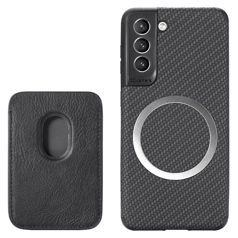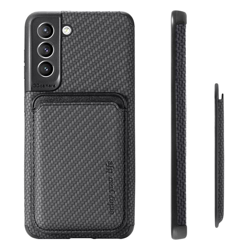 Samsung Galaxy S21 FE 5G Magnetisk Cover med Kortholder - Karbonfiber