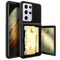 Samsung Galaxy S21 Ultra 5G Hybrid Cover med Glidende Kortslot - Sort