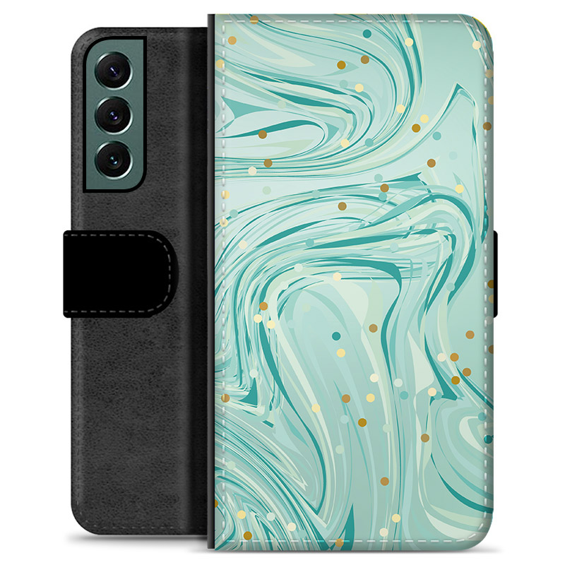 Samsung Galaxy S22+ 5G Premium Flip Cover med Pung - Grøn Mynte