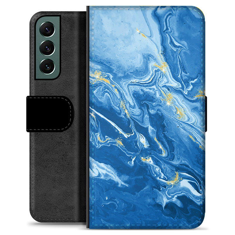 Samsung Galaxy S22+ 5G Premium Flip Cover med Pung - Farverig Marmor