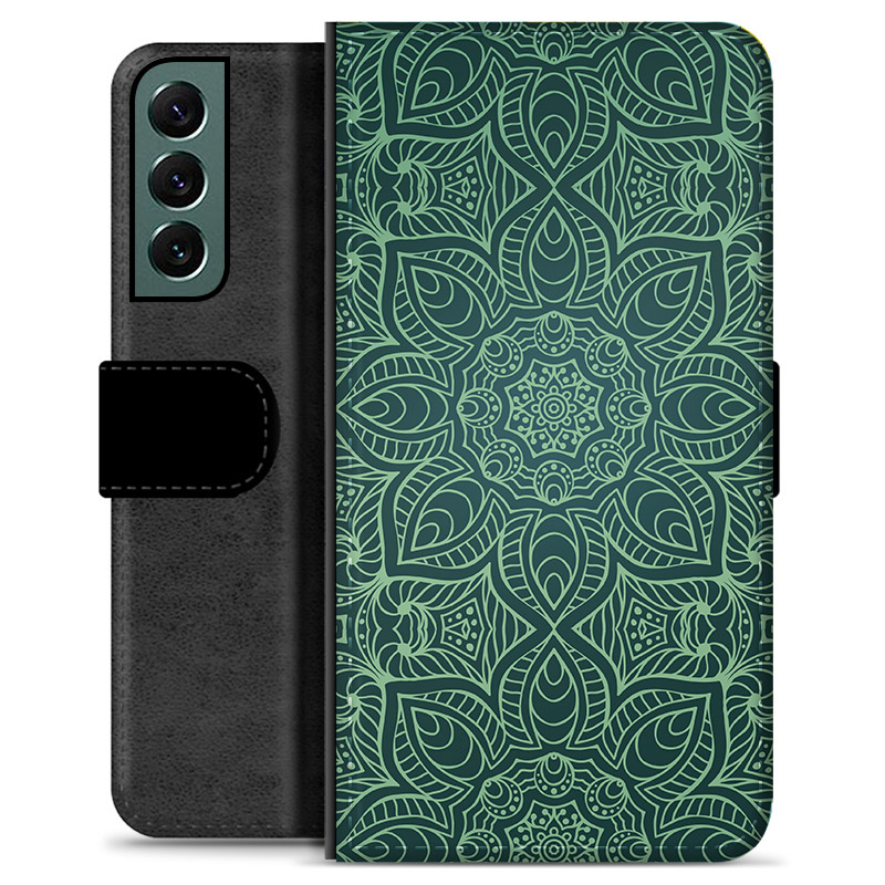 Samsung Galaxy S22+ 5G Premium Flip Cover med Pung - Grøn Mandala