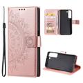 Samsung Galaxy S22 5G Mandala Series Pung Taske med Stativ - Pink