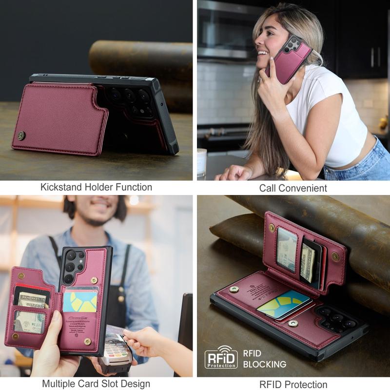 Samsung Galaxy S22 Ultra 5G Caseme C22-etui RFID-kortpung - Rød