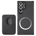 Samsung Galaxy S22 Ultra 5G Magnetisk Cover med Kortholder - Karbonfiber - Sort