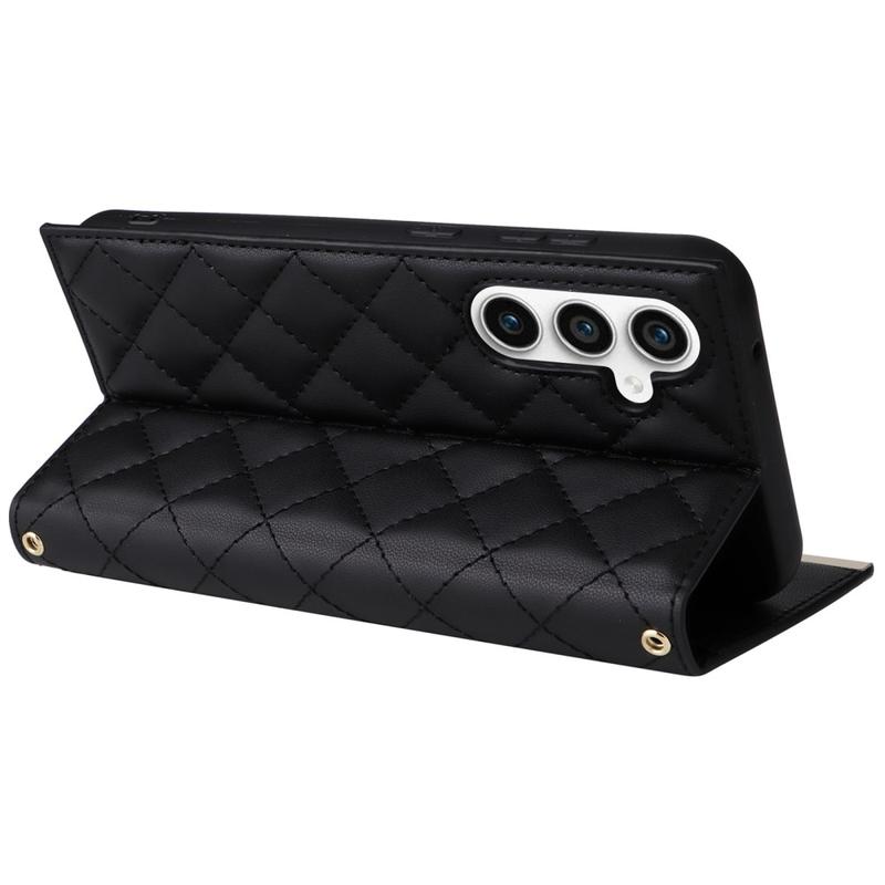 Beskyt din Samsung Galaxy S23 FE med dette luksuriøse quiltede pungetui. Konstrueret af TPU-materiale overtrukket med PU-læder, er dette etui ridsefast og anti-fingeraftryk, så din telefon ser stilfuld og elegant ud. Syningerne danner et rombeformet gittermønster, som giver et moderne og smukt touch til etuiet. Den hævede kant på kameraet og skærmen giver effektiv beskyttelse mod ridser, mens de præcise udskæringer giver fuld adgang til alle knapper, porte og andre funktioner. Pungdesignet gør det nemt at opbevare vigtige kort og kontanter, og de medfølgende sugekopper kan bruges som støtte til håndfri brug. Med ekstra beskyttelse mod ridser, stød, fald og daglige skader leveres dette etui også med en skulderrem og håndledsrem for ekstra bekvemmelighed.