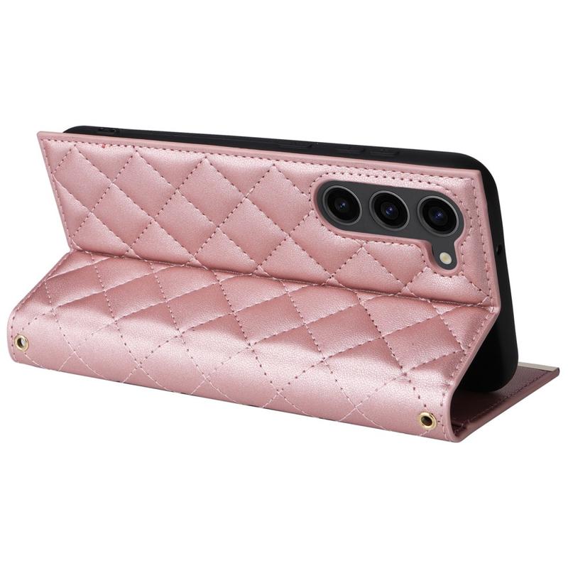 Beskyt din Samsung Galaxy S23 med dette luksuriøse quiltede pungetui. Konstrueret af TPU-materiale overtrukket med PU-læder, er dette etui ridsefast og anti-fingeraftryk, så din telefon ser stilfuld og elegant ud. Syningerne danner et rombeformet gittermønster, som giver et moderne og smukt touch til etuiet. Den hævede kant på kameraet og skærmen giver effektiv beskyttelse mod ridser, mens de præcise udskæringer giver fuld adgang til alle knapper, porte og andre funktioner. Pungdesignet gør det nemt at opbevare vigtige kort og kontanter, og de medfølgende sugekopper kan bruges som støtte til håndfri brug. Med ekstra beskyttelse mod ridser, stød, fald og daglige skader leveres dette etui også med en skulderrem og håndledsrem for ekstra bekvemmelighed.