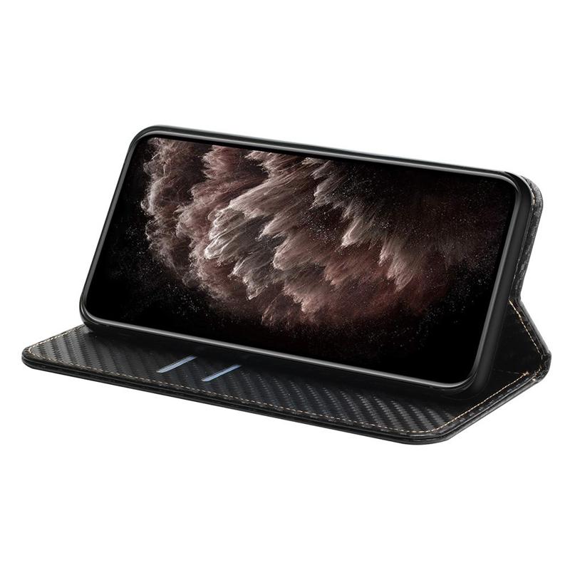 Opbevar dine vigtigste kort og kontanter sammen med din Samsung Galaxy S23 Plus 5G, og hold det hele sikret i denne pung med tekstur som karbonfiber. Fremragende 360-graders beskyttelse, der er sikret med det magnetiske lukkesystem. Du kan også se videoer håndfrit, takket være den sammenfoldelige standerfunktion.