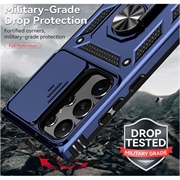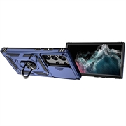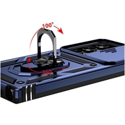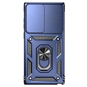 Samsung Galaxy S23 Ultra 5G Roterende Ring Hybrid Cover med Kameraskjold - Blå