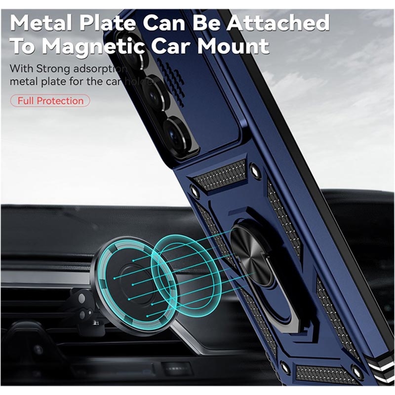 - Roterende ringhybridtaske med kameralåg til Samsung Galaxy S23 Ultra 5G