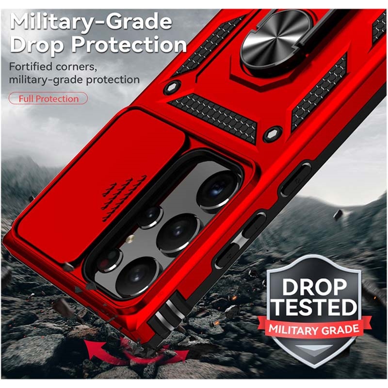 - Roterende ringhybridtaske med kameralåg til Samsung Galaxy S23 Ultra 5G