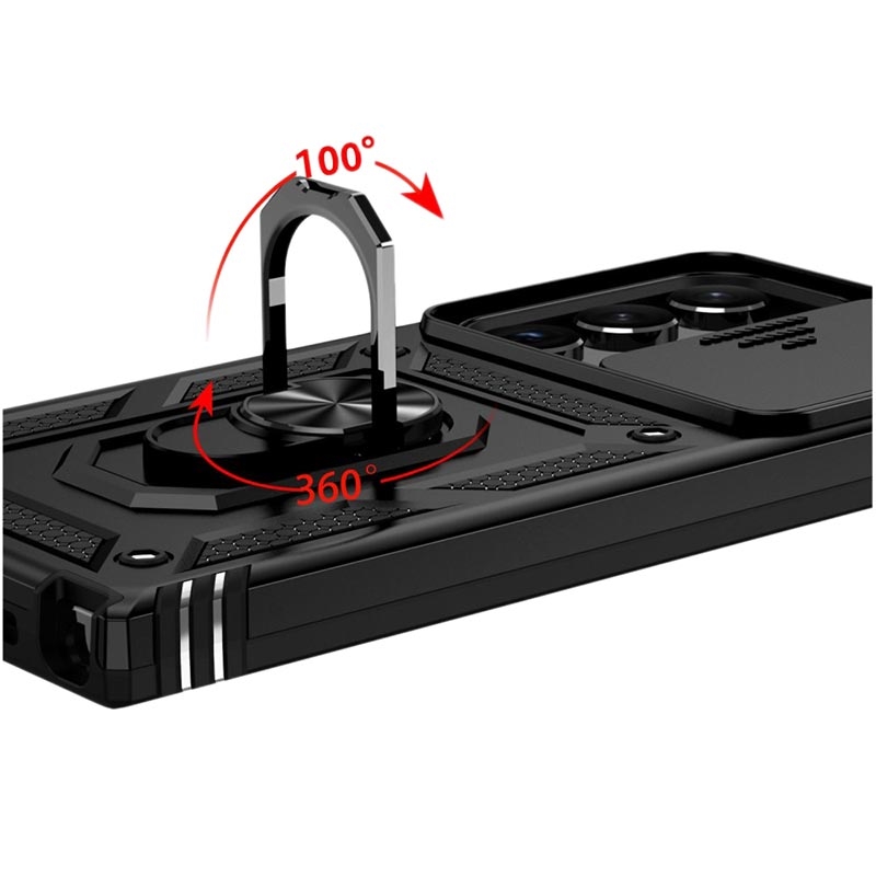 - Roterende ringhybridtaske med kameralåg til Samsung Galaxy S23 Ultra 5G