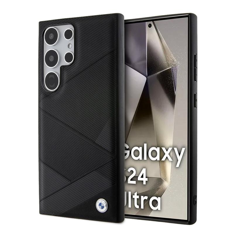 Samsung Galaxy S24 Ultra BMW Signature Crossing Lines Pattern læderbetrukket etui - sort