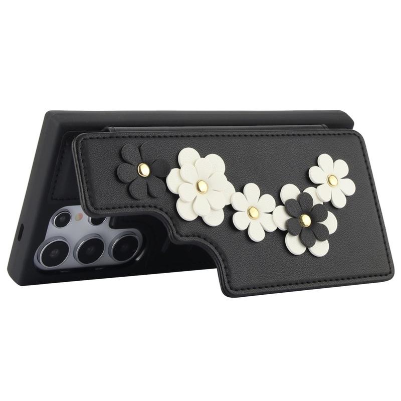 Blomsterdekorationsetui med rem og kortholdere til Samsung Galaxy S24 Ultra
