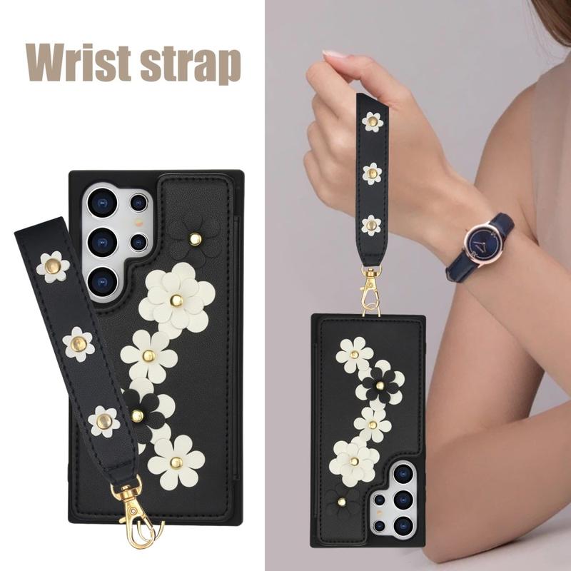 Samsung Galaxy S24 Ultra Flower Decor Case er fremstillet af polyuretan og TPU-materialer, der giver holdbar beskyttelse. Det stilfulde design har blomster på bagsiden af etuiet og håndstroppen. Det har en kortlomme til opbevaring af op til 4 vigtige kort, og kortholderen på bagsiden kan også bruges som støttefod til flere betragtningsvinkler. Magnetknappen holder kortene på plads, mens præcise udskæringer giver fuld adgang til alle knapper og porte. Beskyt din telefon mod daglige skader med dette praktiske etui, der leveres med en håndrem og en skulderrem, så den er nem at bære.
