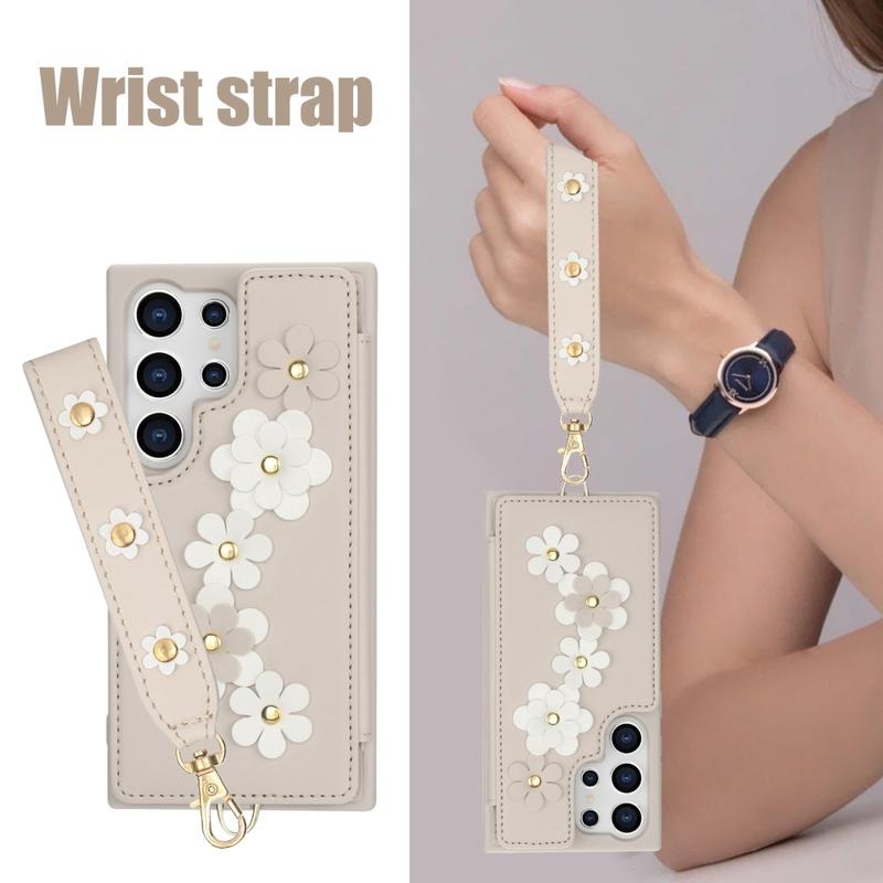 Samsung Galaxy S24 Ultra Flower Decor Case er fremstillet af polyuretan og TPU-materialer, der giver holdbar beskyttelse. Det stilfulde design har blomster på bagsiden af etuiet og håndstroppen. Det har en kortlomme til opbevaring af op til 4 vigtige kort, og kortholderen på bagsiden kan også bruges som støttefod til flere betragtningsvinkler. Magnetknappen holder kortene på plads, mens præcise udskæringer giver fuld adgang til alle knapper og porte. Beskyt din telefon mod daglige skader med dette praktiske etui, der leveres med en håndrem og en skulderrem, så den er nem at bære.